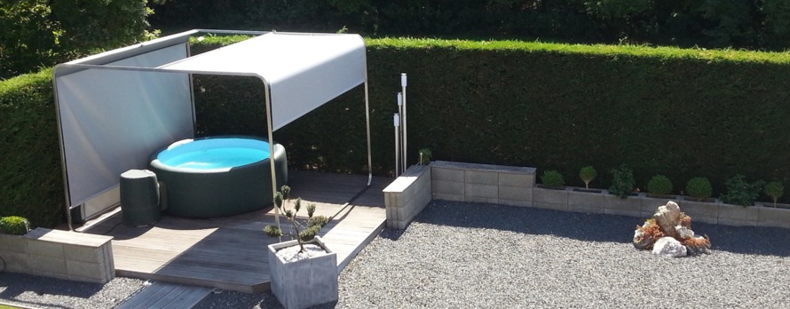Eine Beschattung, wie sie wohl einzigartig ist am Niederrhein und ein perfekte Ergänzung zum whirlpool...